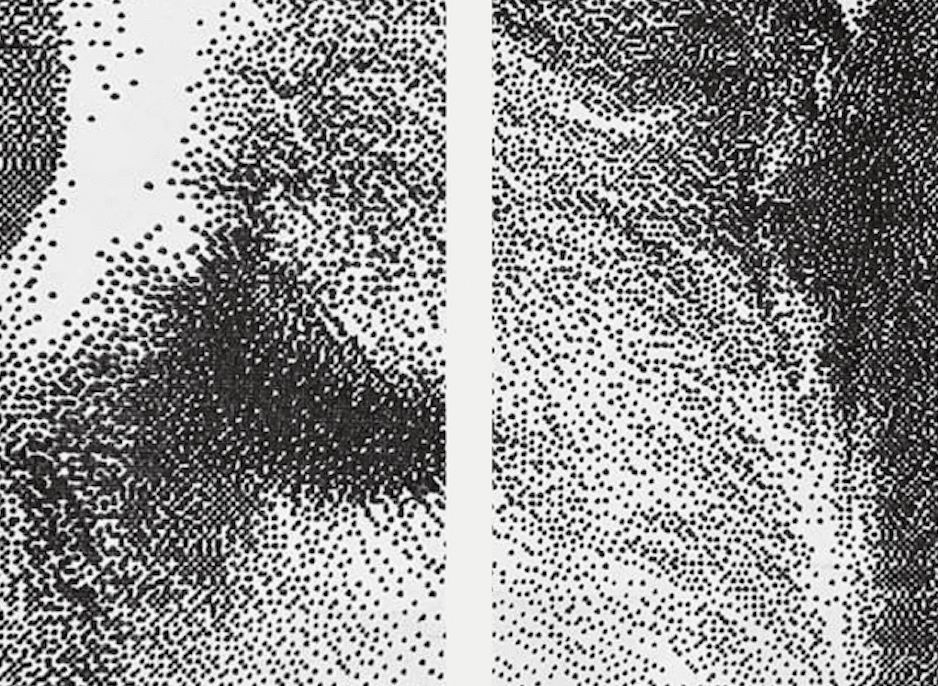 The exploited effect is the perception of the eye of more concentrated and less concentrated areas: areas with a greater number of points appear darker; and vice versa. By processing light and dark areas quickly, ignoring the few millimeters between the points, the printed image is perceived.